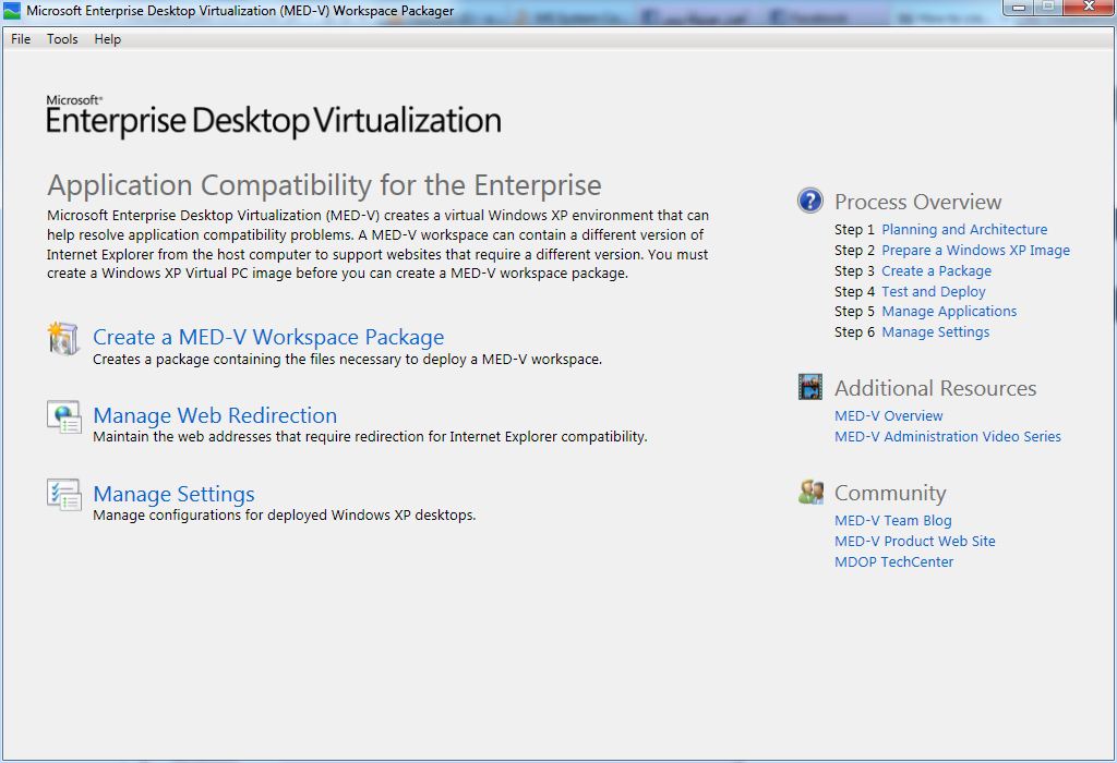2- On the MED-V Workspace Packager main panel, click Create a MED-V Workspace Package.