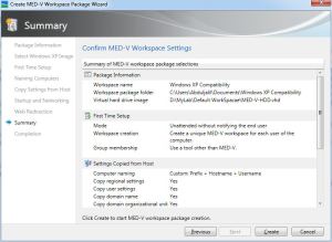 10- On the Summary page, you can review the packaging settings for this MED-V workspace.