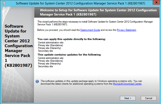 Note: You’ll not receive this error If you install System Center 2012 Configuration Manager Service Pack 1 by using media that you obtained on or after January 25, 2013