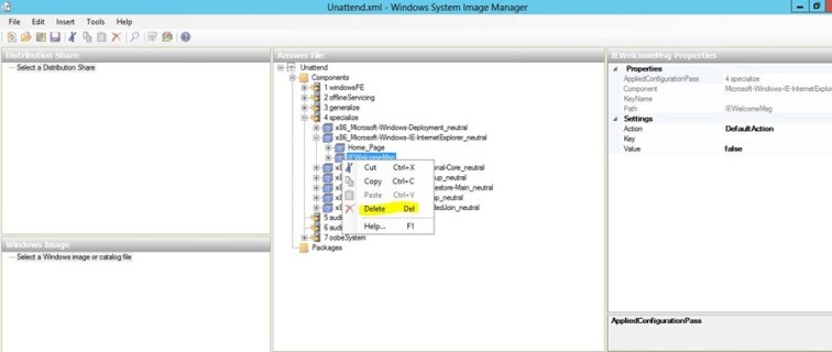 3. Right click on IEWelcomeMsg and delete this component: