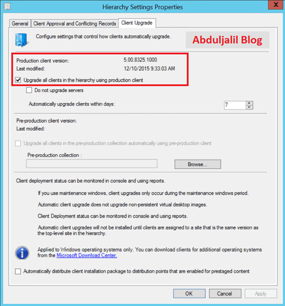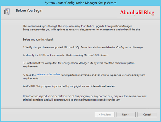 - If you are running System Center 2012 Configuration Manager without Service Pack, you need first to install Service Pack 1 or Service Pack 2 in order to perform in-place upgrade.
