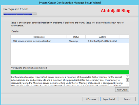 - On the Prerequisite Check, configure any missing Prerequisite and click Begin Install.