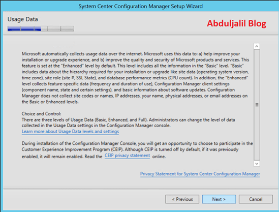 - On the Usage Data, Click Next.