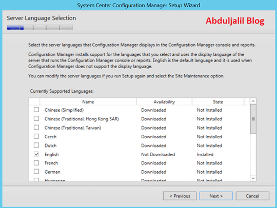 - On the Server Language Selection, it will show previous configuration and you can’t change it during upgrade, click Next.