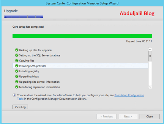 - Click Close once upgrade is complete.