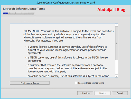 - On the Microsoft Software License Terms, check on I accept these license terms and click Next.
